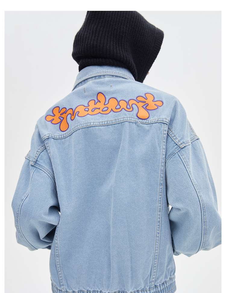 バック刺繍が魅力的なライトブルーデニムジャケット