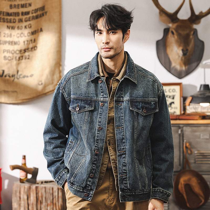 古着のような味わい深い風合いが魅力のメンズデニムジャケットです。